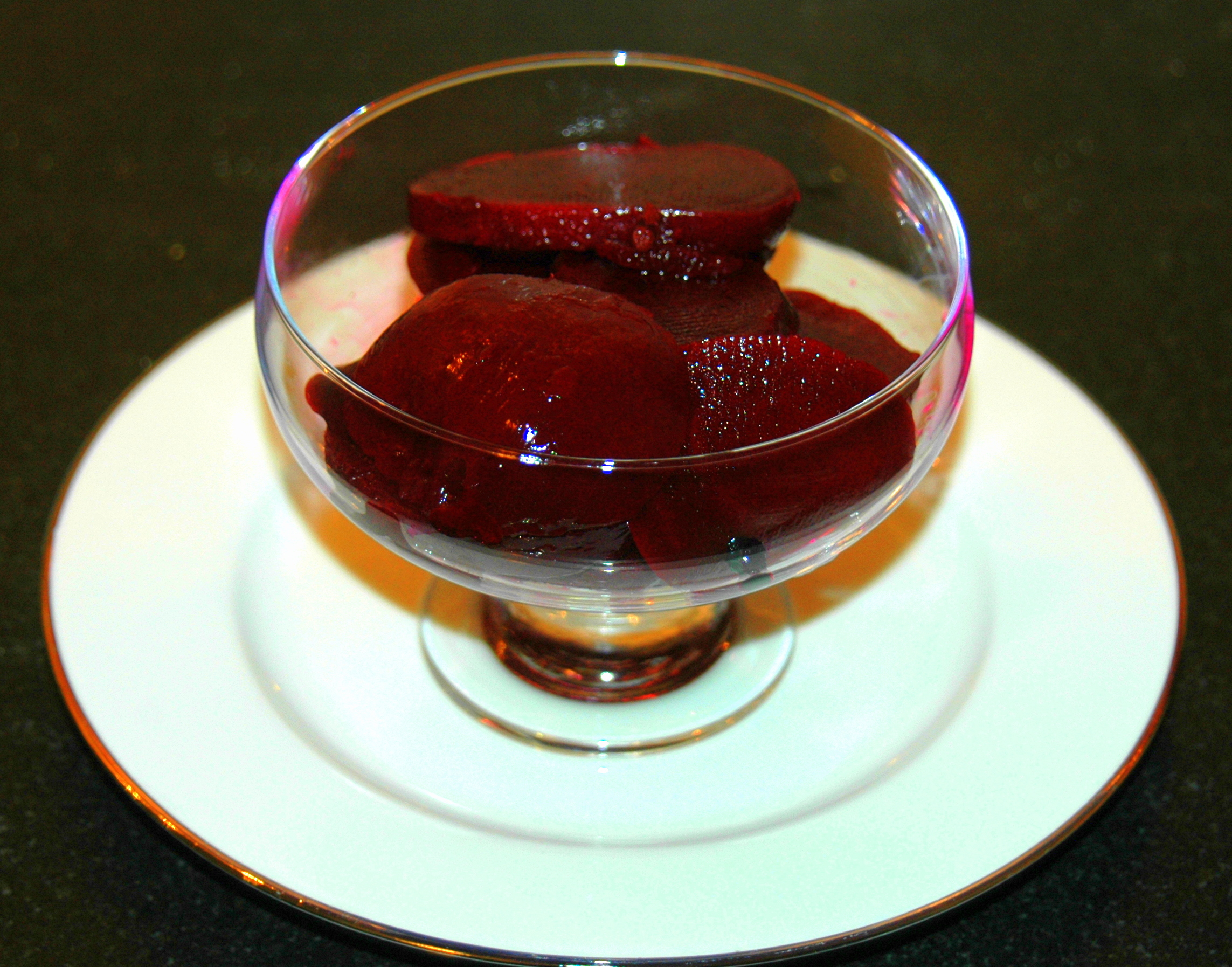 - Before serving, strain the marinade through a fine sieve and pour the strained liquid over the beets.